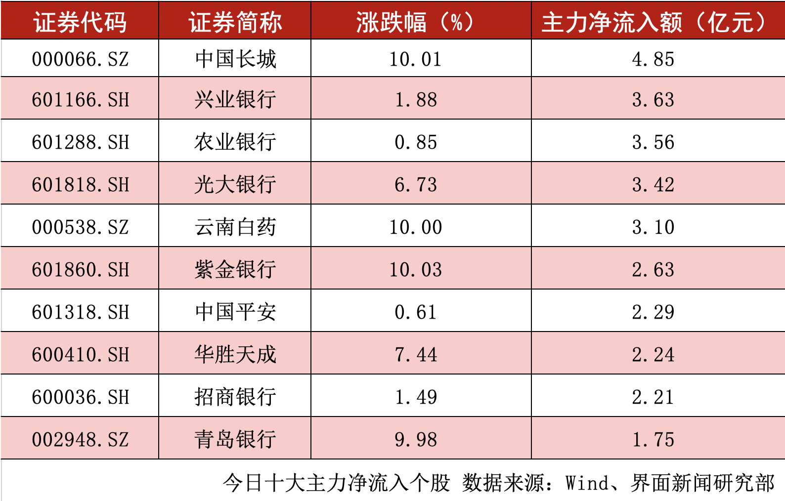 其中,中国长城、云南白药(000538.SZ)、紫金银行(601860.SH)纷纷揽获涨停板。