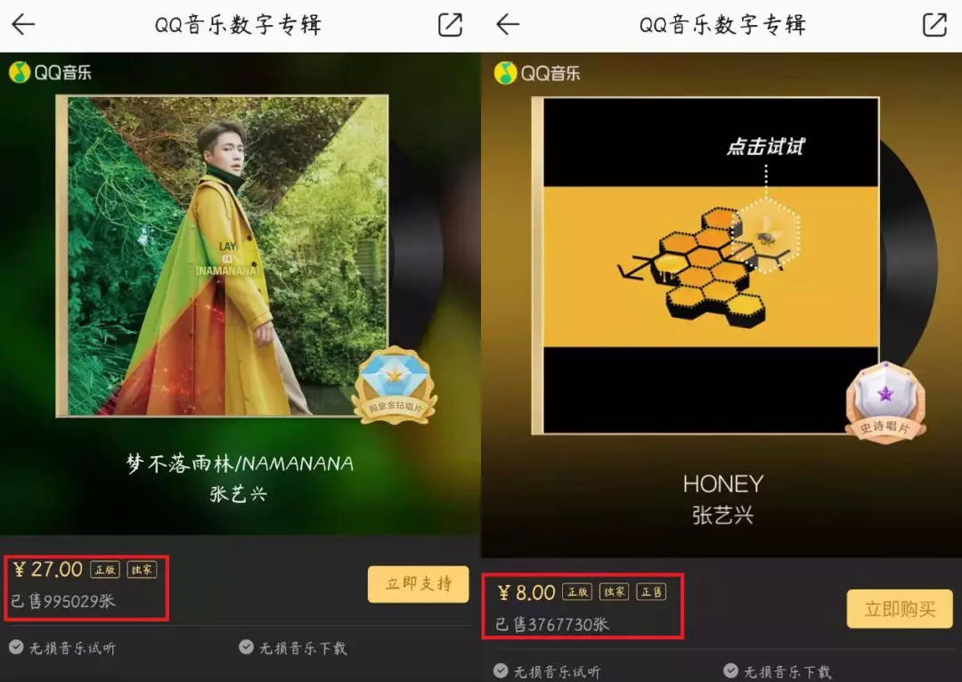 从过去一年的情况来看,张艺兴在音乐上稍微有些成绩,他于2018年10月和2019年6月发布了个人的第三、四张音乐专辑——《梦不落雨林/NAMANANA》和《HONEY》。从销量来看,两张专辑的成绩都还不错,在QQ音乐平台上,第三张专辑销量达99.4万张,第四张专辑销量达376万张。