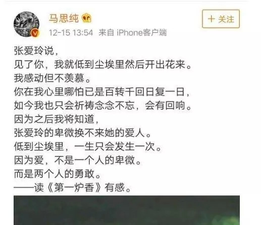 她给数娱举了个例子——马思纯的文艺少女人设,本身文艺人设是个挺好的人设,结果因为马思纯微博文案翻车,被经纪人给炒糊了。