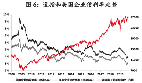 四是美股上涨的主因持续性问题。股市长期牛市是当前美国经济创纪录持续增长的重要支撑因素之一(已连续123个月保持增长),而推动美股长期牛市的一个重要因素就是公司通过发债回购股票。按照德银的统计,2009年至今,公司用于股票回购的资金规模已高达3.6万亿美元,同时特朗普减税政策带给美国公司红利的三分之一也被用于股票回购。美股公司之所以能够持续地通过发债来获取资金,与美联储营造的低利率环境密不可分,而在美国经济内生动力和劳动生产率未能明显改善之前,美股上涨对美国经济的贡献至关重要,美联储降息和重回扩表显然是有利于公司发债回购股票模式的延续。