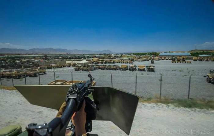 萨米姆少校给检查站做了一些部署。指挥车充当先锋,开到站点的最前端,随时向后方报告车辆的情况,一旦发现可疑车辆立即开枪。后方四辆“悍马”,两两排开,每辆上面架起一个小炮台和数把M60机枪。
