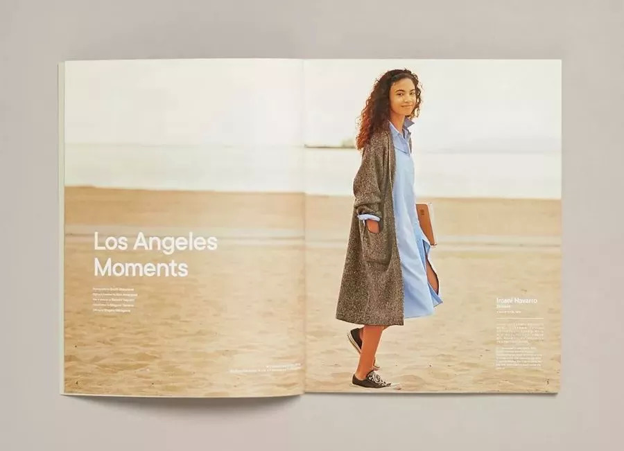 不只是产品图册——《LifeWear》用“与谁合作”、“谁在穿”、“去往何处”、“与谁对话”几个板块进行内容串联,以真正具有价值的内容去吸引读者。拜访知名设计师工作室、洛杉矶年轻人的穿搭图鉴、胡志明市的文艺指南、网球名将费德勒的独家访谈……所有这些都是读者感兴趣的话题,不是一本草草翻完的品牌杂志,而是一本可以一页页静心读下来的杂志。