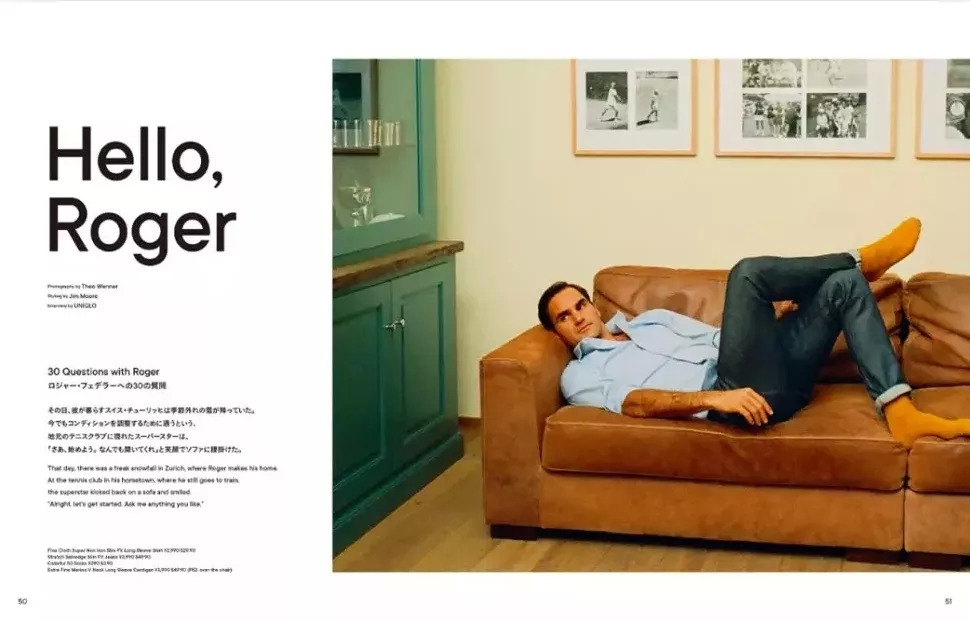 但又要万念不离其宗——《LifeWear》每一篇内容看似天马行空,但又每一篇都与优衣库品牌之间存在关联性:瑞典陶艺家所设计的图案曾经出现在优衣库的T恤上;世界各地的年轻人根据不同的场景选择不同的优衣库服饰;优衣库将在胡志明市开出新的店铺;费德勒的另一个身份其实是优衣库的品牌大使。就是这样,读者在好奇、轻松之中了解到了一个更全面、立体的品牌。