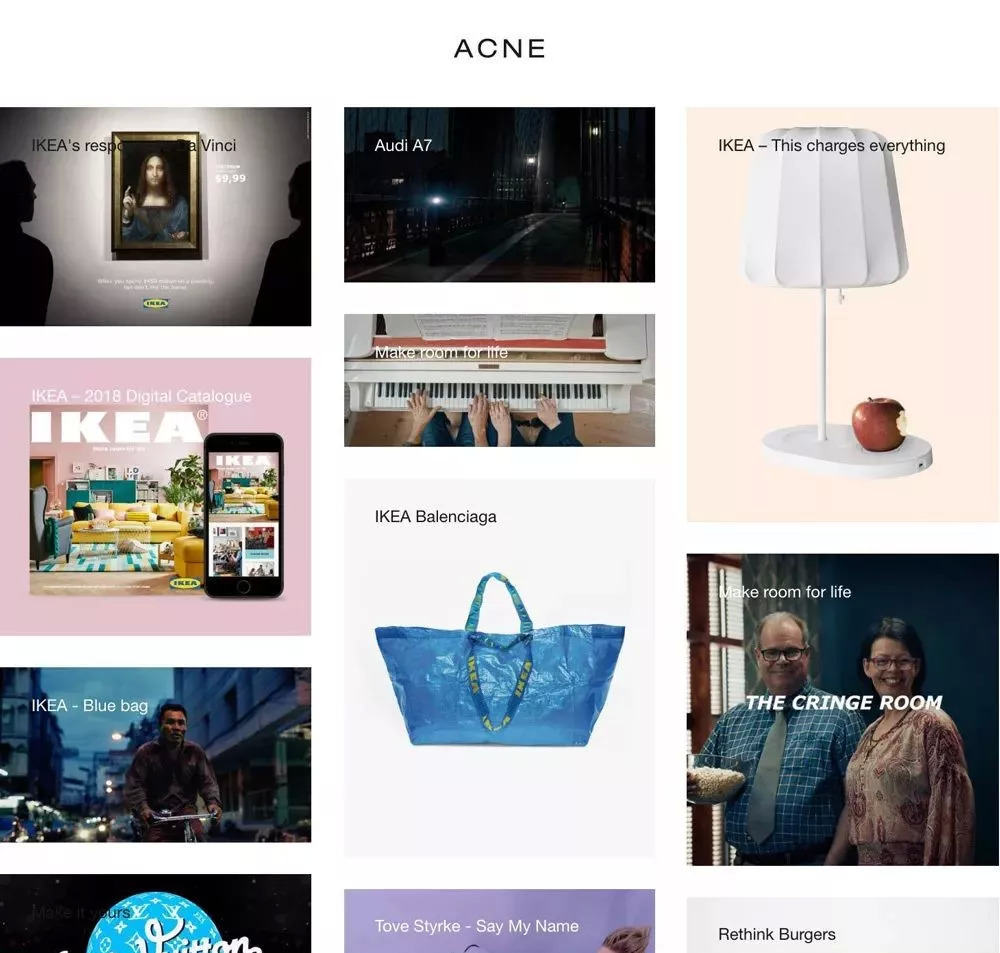 ACNE的官网,一眼就能看到许多熟悉的案例