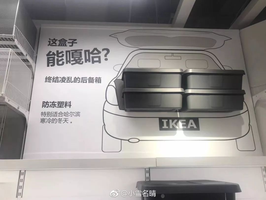 本土化的营销与外来品牌的形象反差常常能带来趣味感。譬如宜家在2017年在哈尔滨的新开的门店,就以极富东北特色的文案在社交网络上引起了讨论。介绍塑料收纳盒称“这盒子 能嘎哈?终结凌乱的后备箱 防冻塑料 特别适合哈尔滨的冬天”;“埋汰衣服没地儿放 咋整”这时候你需要一个洗衣袋——老铁是不是看着看着就读出来了?