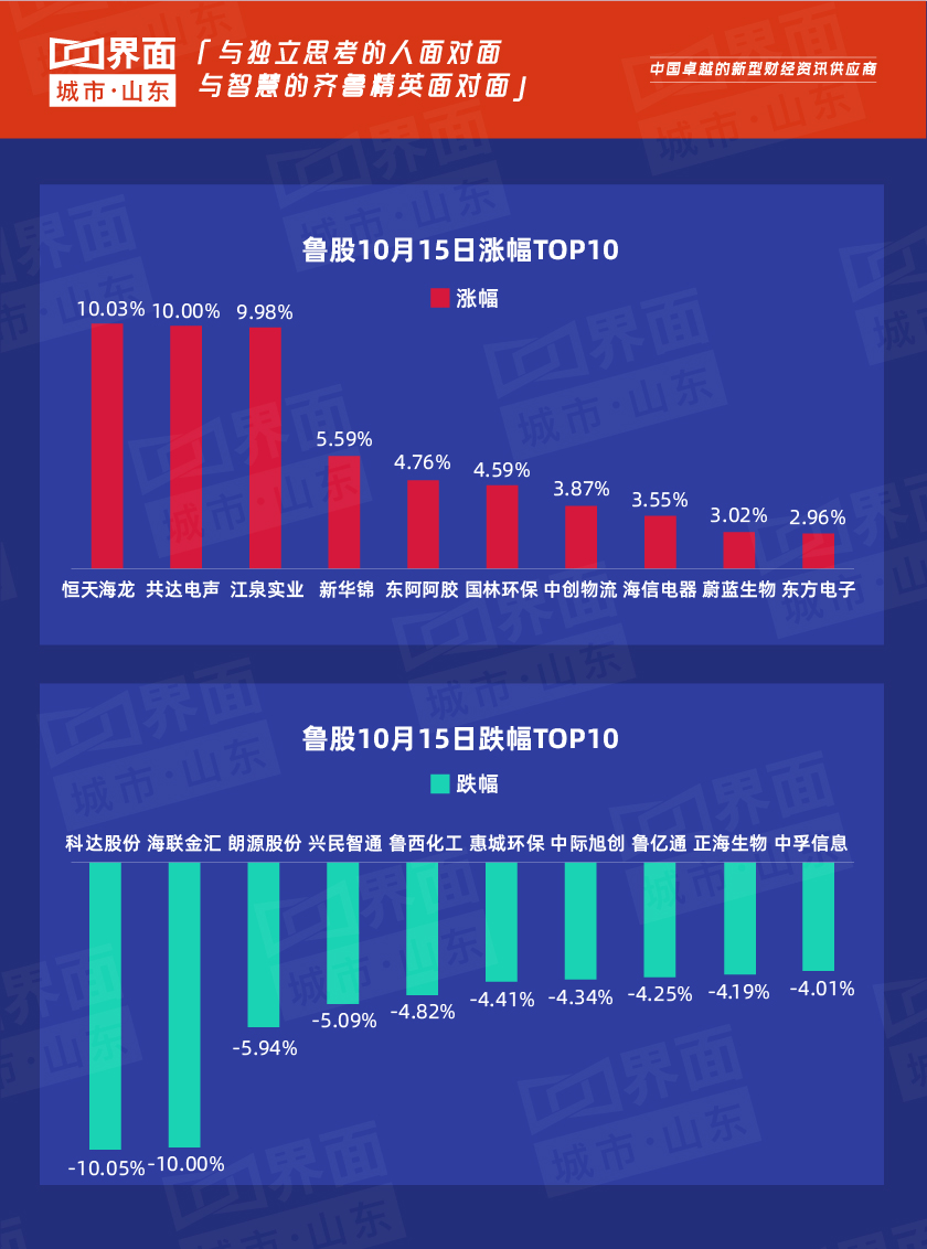 10月15日,山东省内沪深股票有53只个股上涨,143只下跌,9只与上一个交易日收盘价持平;