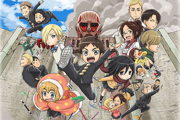 改编自中川沙树的同名漫画。中川沙树是「进击的巨人」原作者谏山创在设计学校时的学妹,她直言自己是巨人迷,却因为原著有点可怕而不敢观看,于是创作出较为可爱的中学篇。动漫版「进击!巨人中学校」沿用了「进击的巨人」的原班人马,包括梶裕贵、石川由依、神谷浩史、小野大辅、井上麻里奈、谷山纪章、小林优等。这么萌的故事应该不用禁播了吧!
