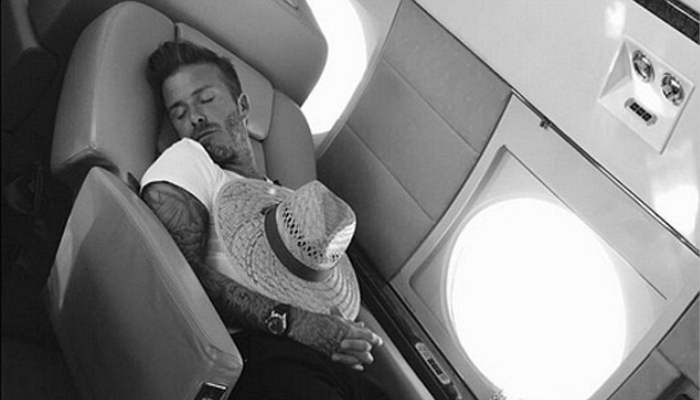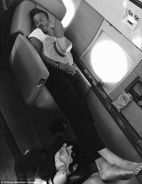 家庭支柱小贝显然利用一切机会来休息。周三,当小贝与妻子带着4个孩子乘坐私人飞机的时候,小贝就挤出时间小睡一会儿。