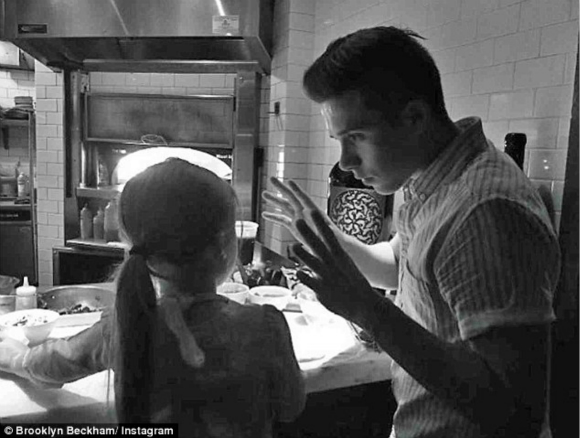 在早些时候的照片中,布鲁克林与妹妹小七一起做披萨,透露自己有些烹饪的小技巧,愿意分享给妹妹。