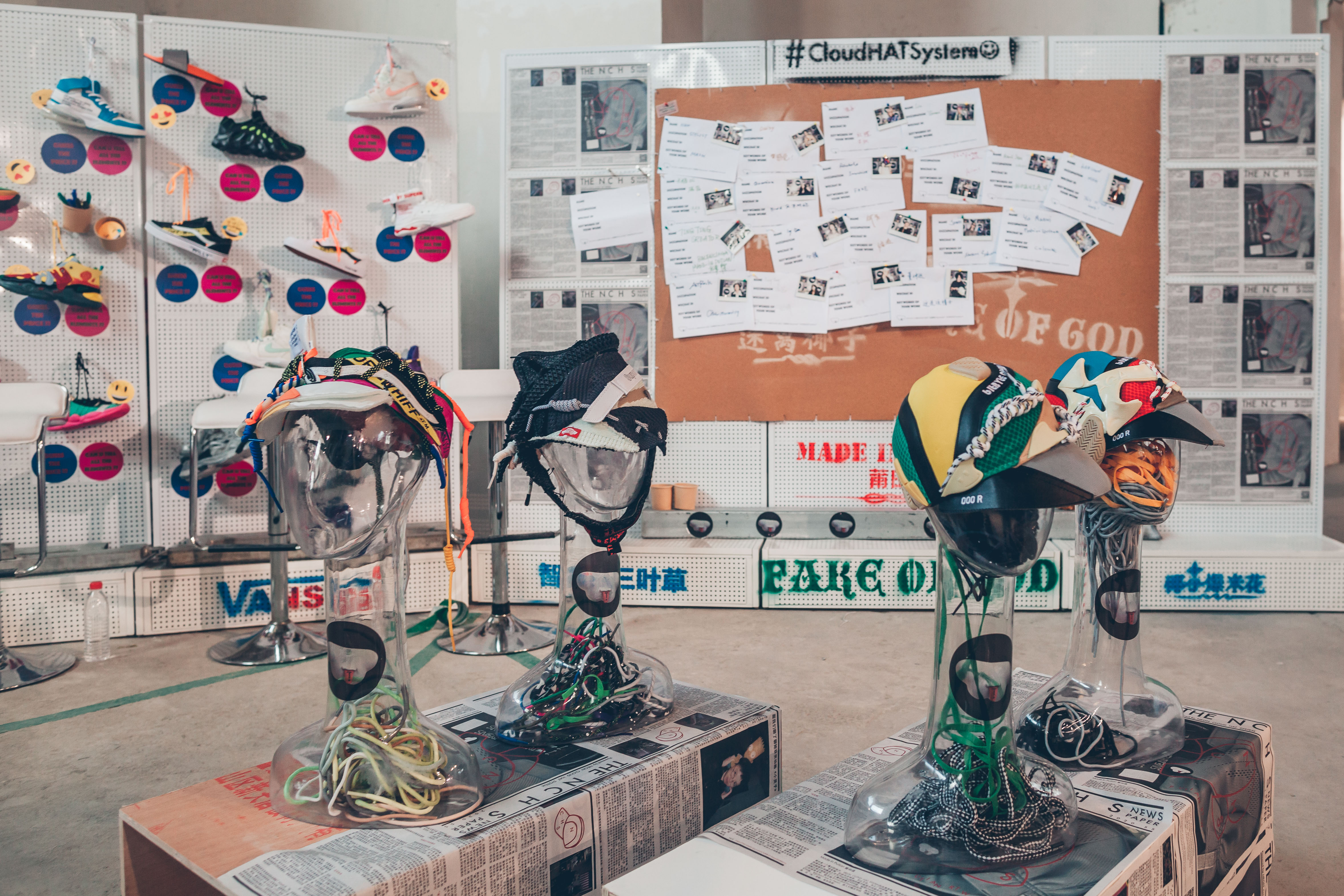 曾凭借“莆田世家老爹帽”引起关注的N·C·H·S(Neon Cloud Hat System)创意工作室来到了上海时装周,在先锋时装艺术节LABELHOOD蕾虎举办了为期四天的“云寨莆田”工作坊。在这里,人们要把莆田鞋转换成帽子。