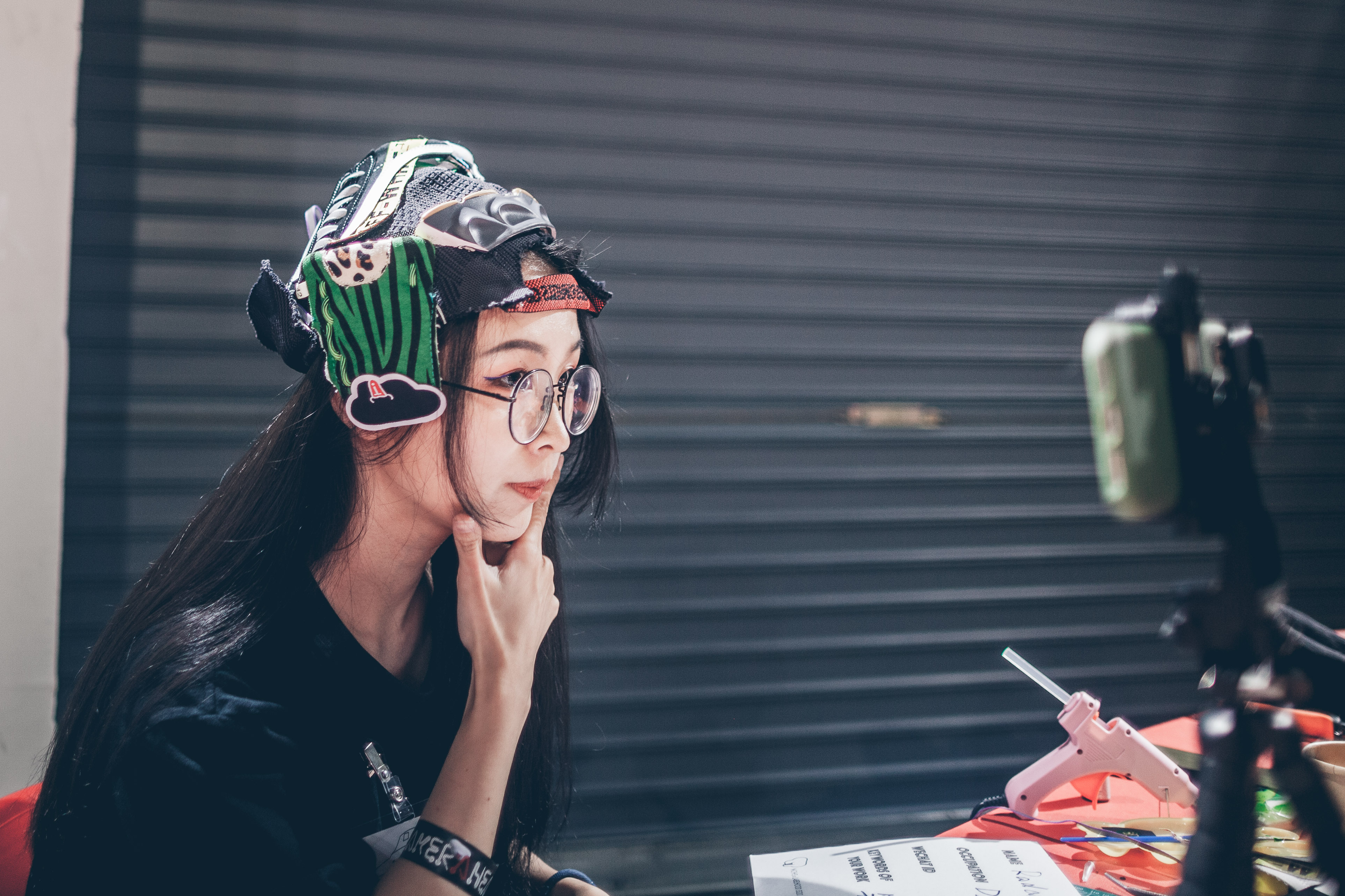 道具万全,只欠创意。可当我拿到一个全黑色的帽胚,面对着工作台上的剪刀和打孔器,还是大脑空白地静坐了好几分钟。