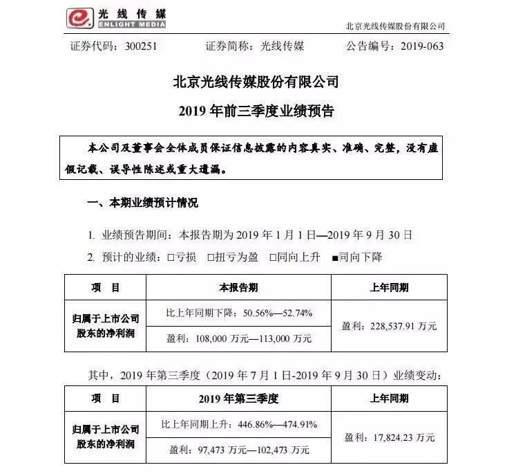 此前的2018年曾因出售新丽传媒获得投资收益接近20亿元,不过光线2019年因为投资收益显著减少,整体2019年1-9月份的净利润是同比下降的,下降幅度超过50%。