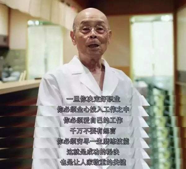 全世界年纪最大的米其林三星主厨——小野二郎在超过五十五年的时间里,都在做寿司,为了保护创造寿司的双手,不工作时永远带着手套,连睡觉也不懈怠。