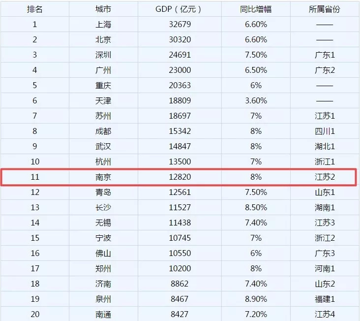 作为长三角城市群中的重要组成部分,并且是江苏省的省会城市,南京仅排在了第11位,而苏州却排在了第7位、位列江苏省第1。