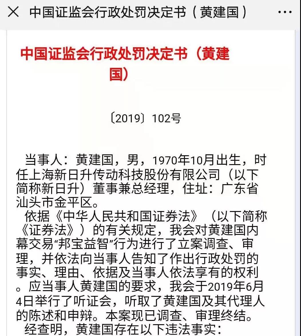 最终,证监会决定对黄建国处以30万元罚款。