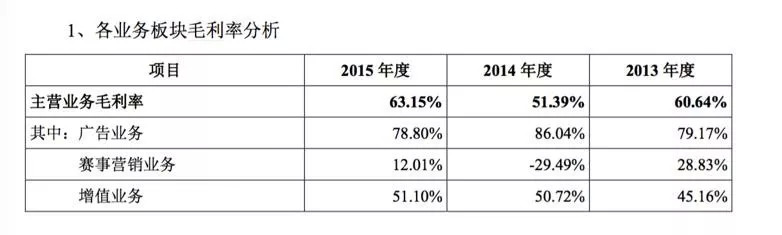 与利润波动相对应的,是公司广告业务毛利率的波动。2013 年-2015年间,虎扑广告业务、赛事营销业务的毛利率均出现过较大波动,公司给出的解释是涉及到合作伙伴违约、线下业务推广毛利率较低等。可见直到2016年之前,除了围绕NBA等内容所展开的线上业务外,很多新业务模式还不够成熟。