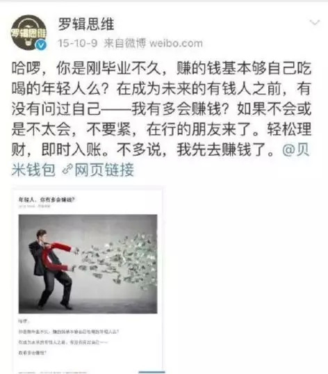 2018年,贝米钱包暴雷,5.4万人血本无归,这其中也有不少罗振宇的粉丝。因为早在2015年的一期常规节目中,罗振宇和罗辑思维官方微博亲自为其背书,并且表示自己已经投入了不少资金。而在这个事件中,巧的是为其站台背书的除了罗振宇,还有吴晓波。