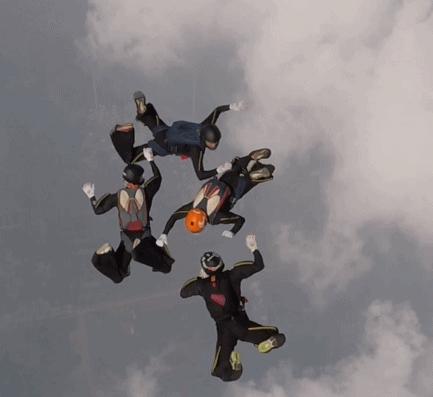 跳伞项目分为定点跳伞、特技跳伞、造型跳伞三部分。定点跳伞,简言之,得跳得准。定点跳伞要求运动员从空中1000米的高度跳下,在下降的过程中判断风向风速,调整降落伞建立空中航线。集体定点共比赛十轮,个人定点比赛八轮,比赛轮次成绩相加,公分数最少的为优胜者。