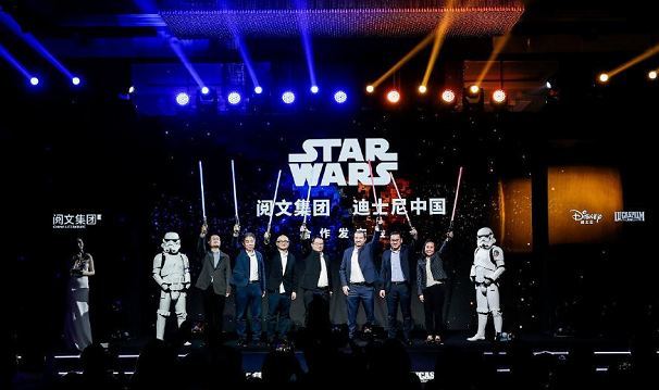 与此同时,中国文娱产业巨头与好莱坞大企业之间的合作也在展开。10月16日,腾讯旗下的阅文集团与迪士尼中国联合宣布,双方在内容创作领域达成合作。其中,星球大战系列中文电子书首次亮相阅文集团旗下数字阅读平台,这也是迪士尼首次在国内开放星战小说的电子版权。