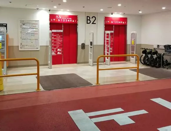 对于此类问题,日本GRAND TREE商业体把地下停车场以红黄蓝绿颜色分为四个停车区,如红色停车区的柱子编号用红色,地面涂成红色,对应的电梯门也用红色。电梯处灯光很亮,让人在远处就能找到进商场的电梯。