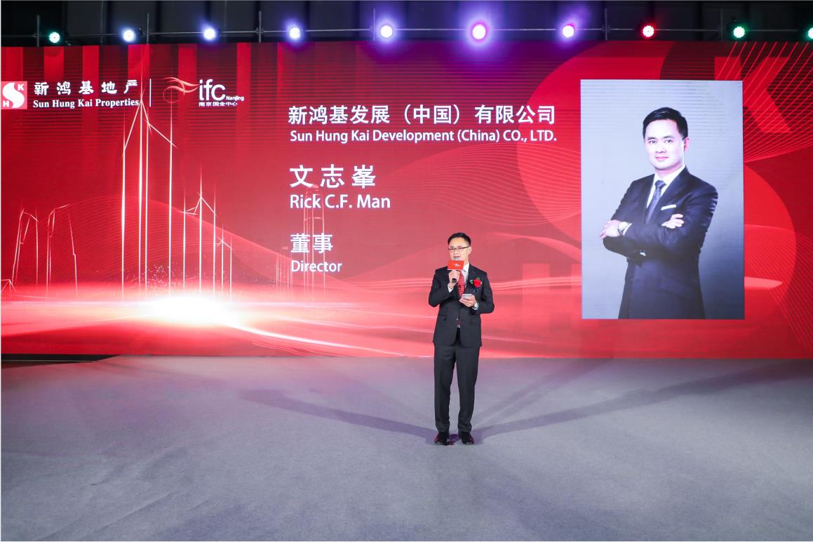 仪式现场,新鸿基发展(中国)有限公司董事文志峰为南京国金中心揭幕。随着两道耀目光带依次经过香港IFC、上海IFC标志抵达屏幕中央,进而汇聚成一个夺目光点,南京国金中心的形象在屏幕上熠熠生辉,预示着新鸿基地产第三座IFC将为南京市打造全新的地标。仪式上还首发了南京国金中心项目视频,全方位展示项目作为大型商业综合体品牌典范IFC的系列作品,于南京再造世界级水准的建筑品质、配套设施,无不呈现新鸿基地产雄厚的开发实力和卓越的商业理念。