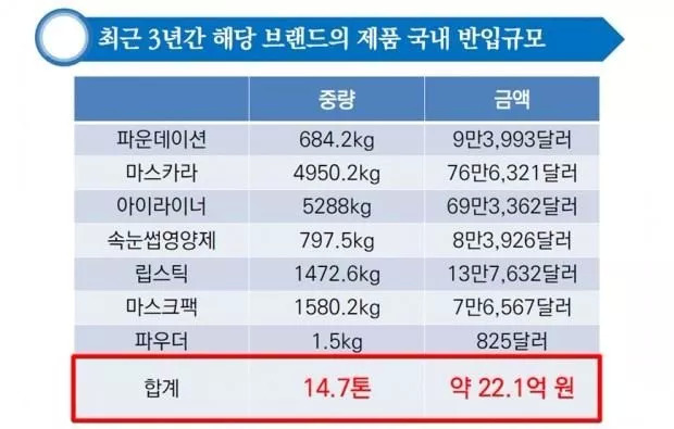 而这款发现问题的日本产睫毛膏,此前在韩国国内的人气颇高。据悉,事件曝光后,相关日本出口商仍坚持通关,截止到7月份,共有5.1吨化妆品进入韩国。