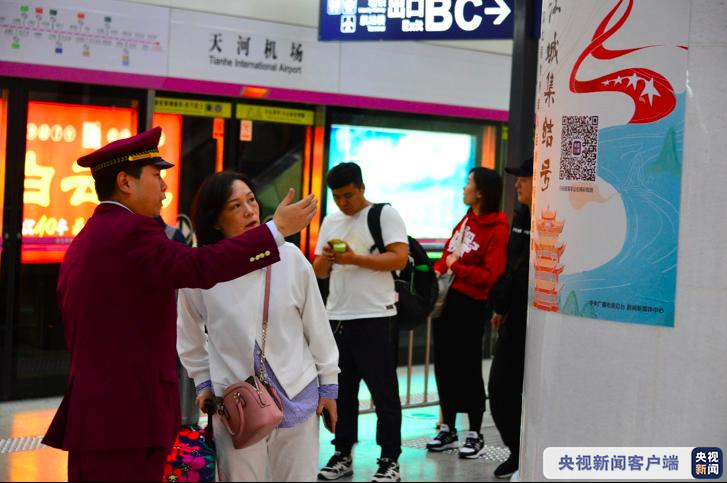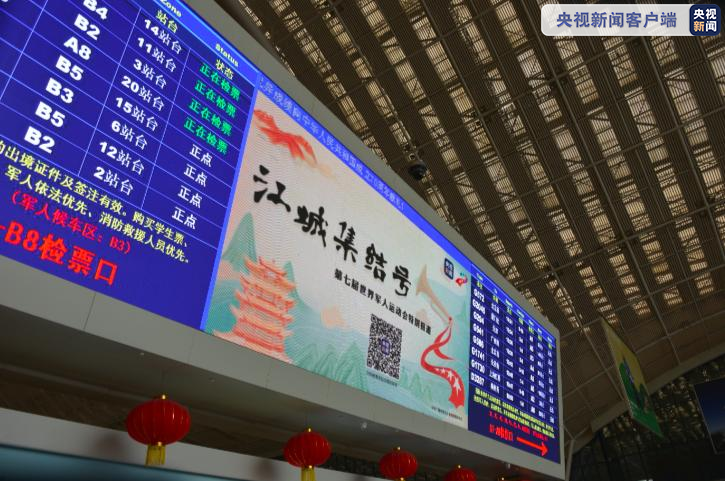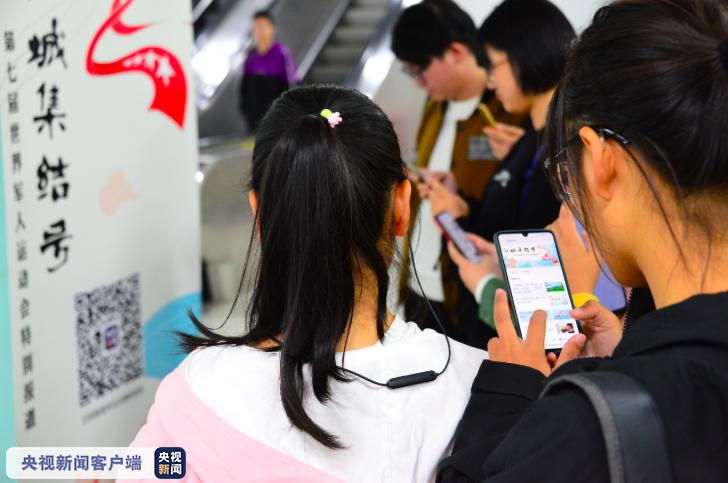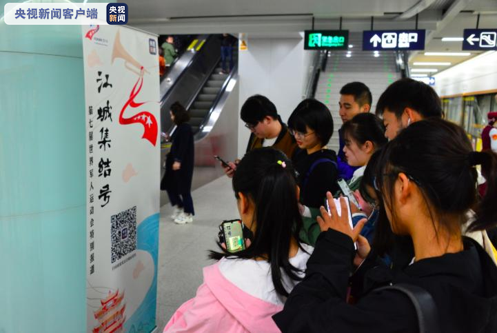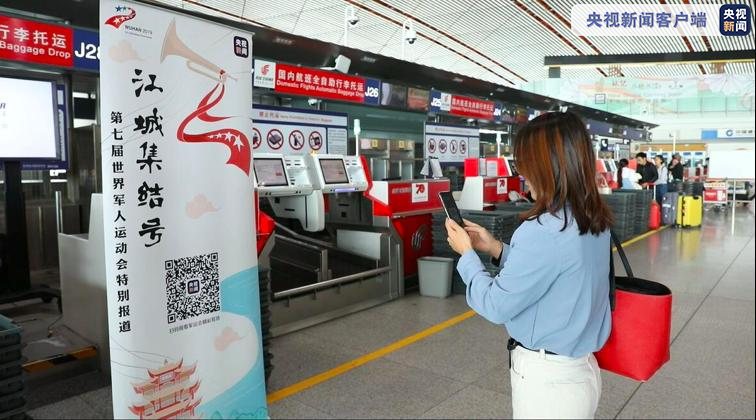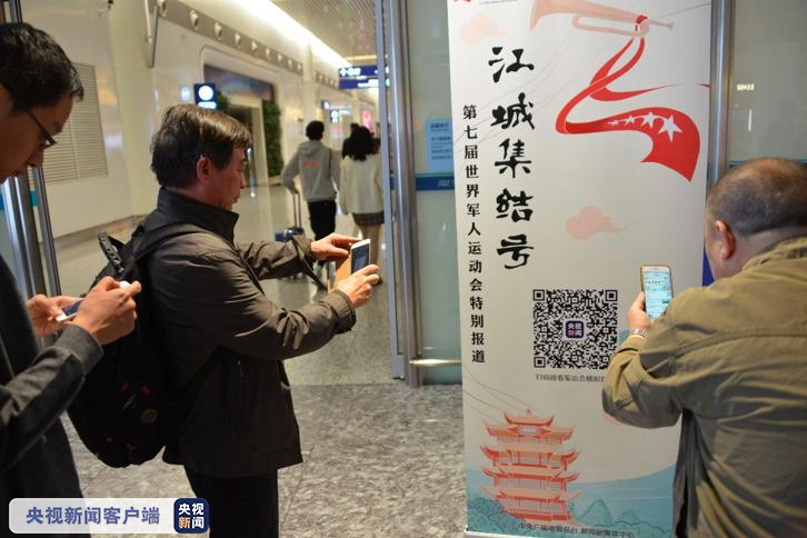 △抵达武汉的旅客纷纷拿起手机扫码关注军运会