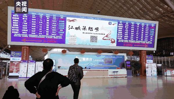 候车大厅的滚动屏上