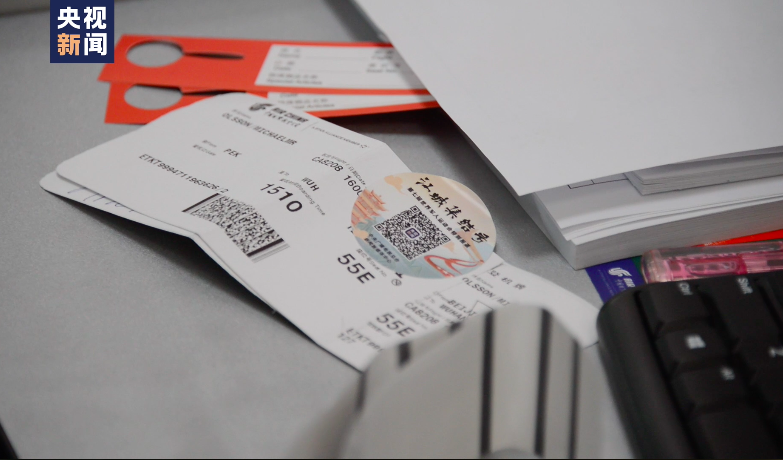 扫码机舱内的央视新闻海报二维码