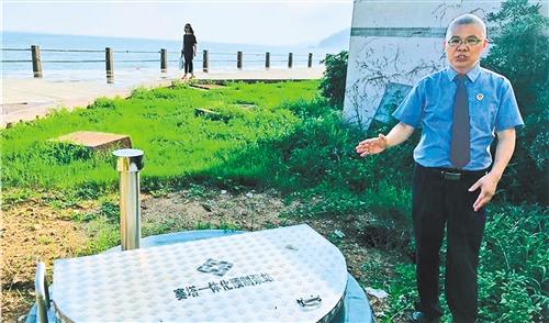 近日,青岛市崂山区检察院的工作人员来到崂山区某小区,查看小区生活污水直排入海整改情况。