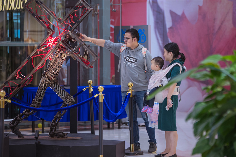 成都SM广场,作为建设路商业标杆,一直致力于将创意文化,尤其是本土文化融入商业空间。此次“重生”新媒体装置艺术展,就将数以吨计的工业时代的废弃物融合再造,并结合互动媒体的新兴表现形式,于10月13日-10月31日期间,对外展出35件装置/雕塑作品,谱写一曲关于“重生”的乐章,并免费向公众开放。主办方SM广场,希望以此为契机引发人们对于环保和生命的思考,同时触发当代成都人关于曾经成华这片土地的时代记忆。