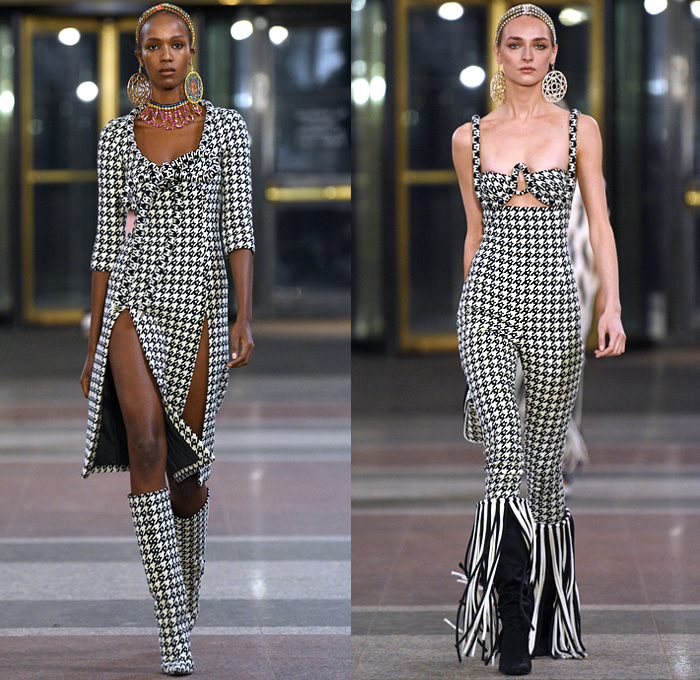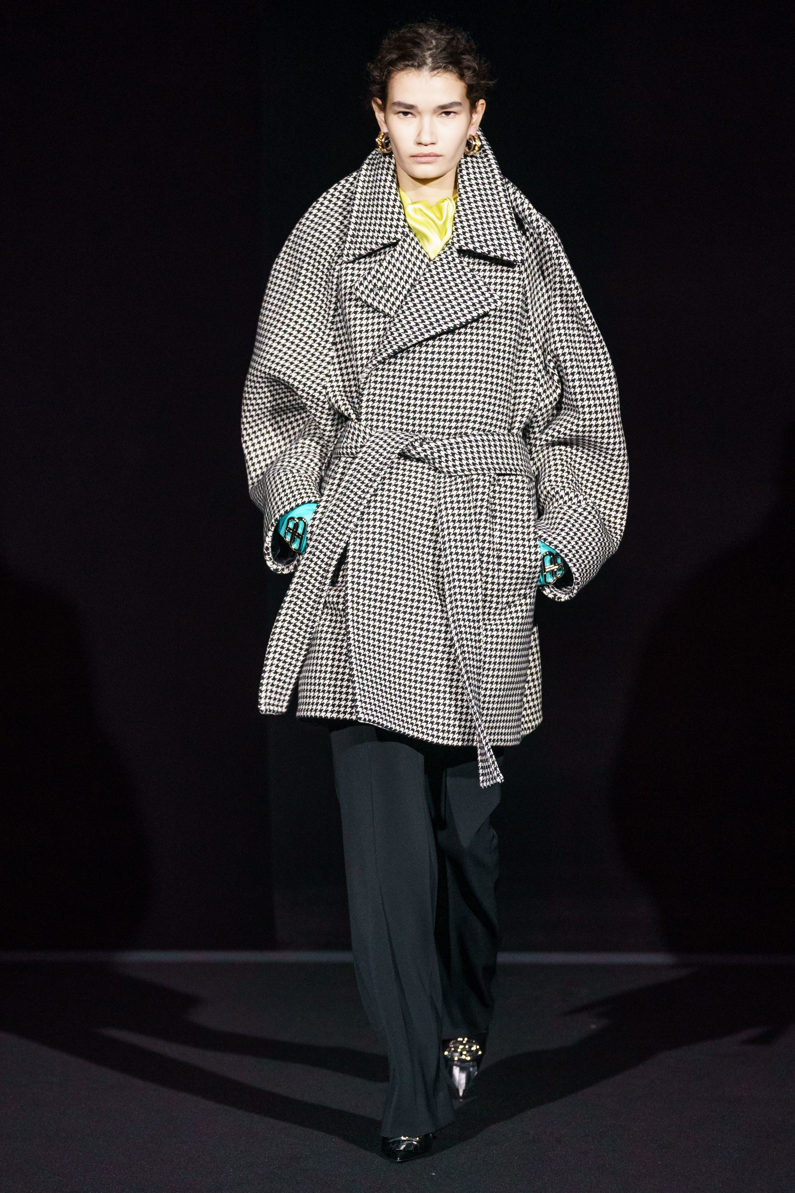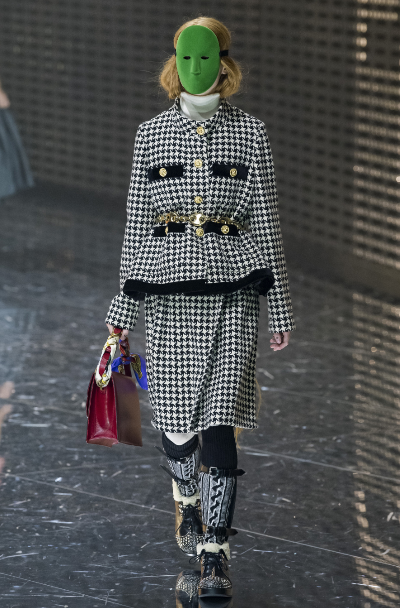 如果对身材充满自信,也可以尝试如Gucci 2019秋冬季系列中呈现的一样,来一套千鸟格纹套裙或是套裤。不过需要注意的是,对于身材不够高挑、纤细的人来说,这样的一身黑白图纹,很容易产生视觉上的膨胀感。