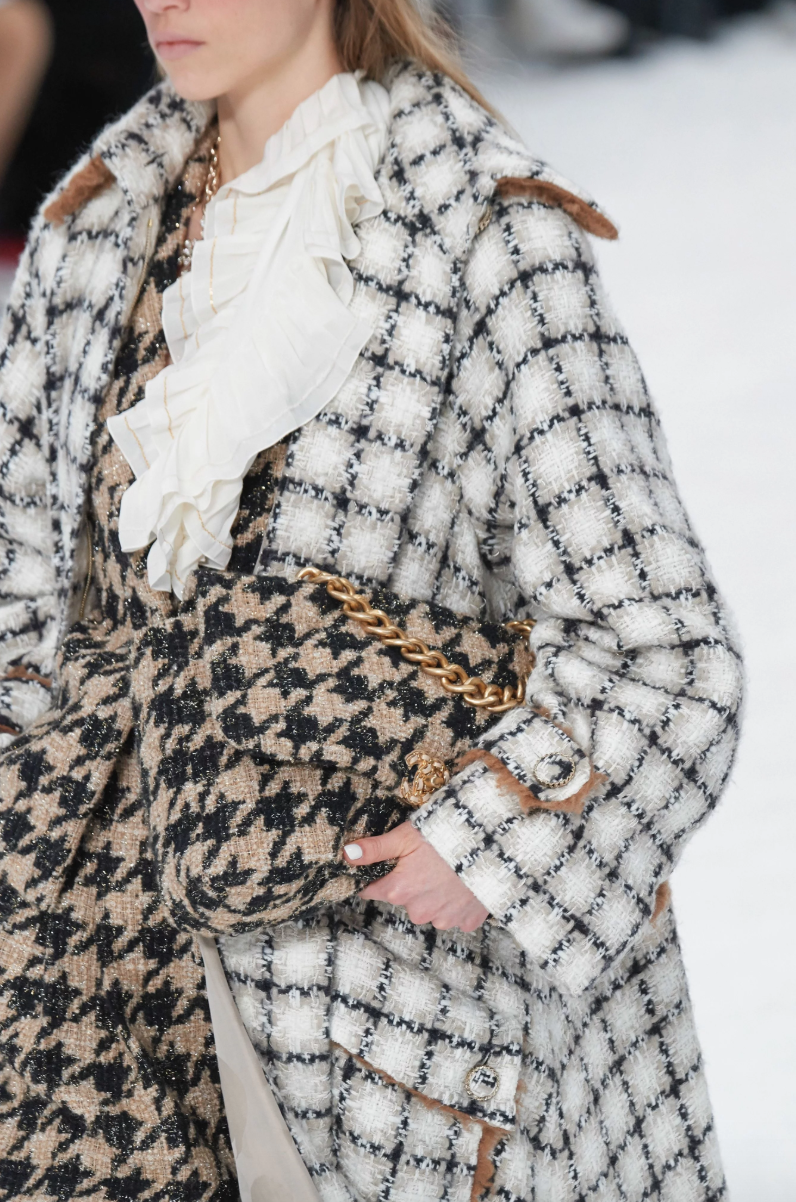 2019秋冬时装周发布新设计的众多品牌中国,最受瞩目的品牌中绝对少不了刚刚离开了“老佛爷”Karl Lagerfeld的CHANEL。让人印象深刻的是,CHANEL在这个系列中呈现了多款带有千鸟格纹元素的设计。