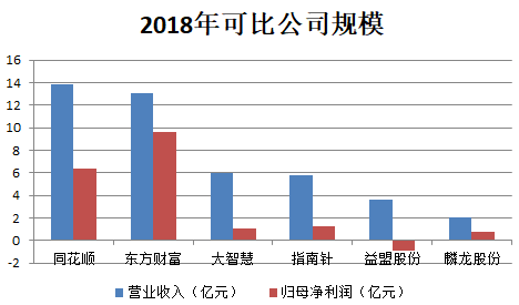 根据最新公布的招股书数据显示,公司2018年实现营业收入5.78亿元,实现净利润1.27亿元,相比于同行业的上市公司,仅次于同花顺和东方财富,并奋起直追大智慧,基本占据行业第三的位置。