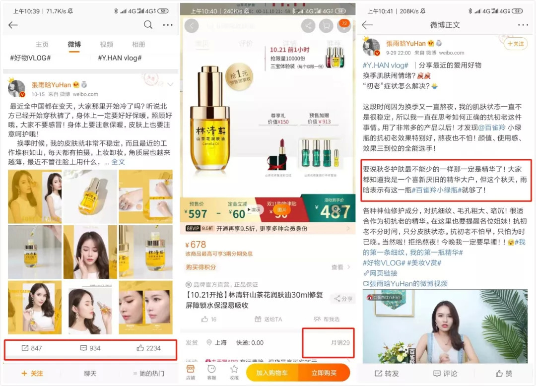 的确,其实张雨晗这个号除了养宫宝这个案例之前,也曾帮林清轩、百雀羚等品牌做过产品推广,但转化结果依然是奇差。