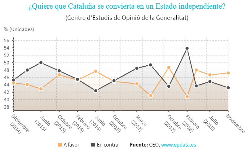 在当年的这场公投中,尽管加区政府宣称支持独立的票数超过90%,但此次公投的实际投票率仅为43%。之后的多份民调更是显示,支持维护西班牙统一的人数一直略压独立派一头。