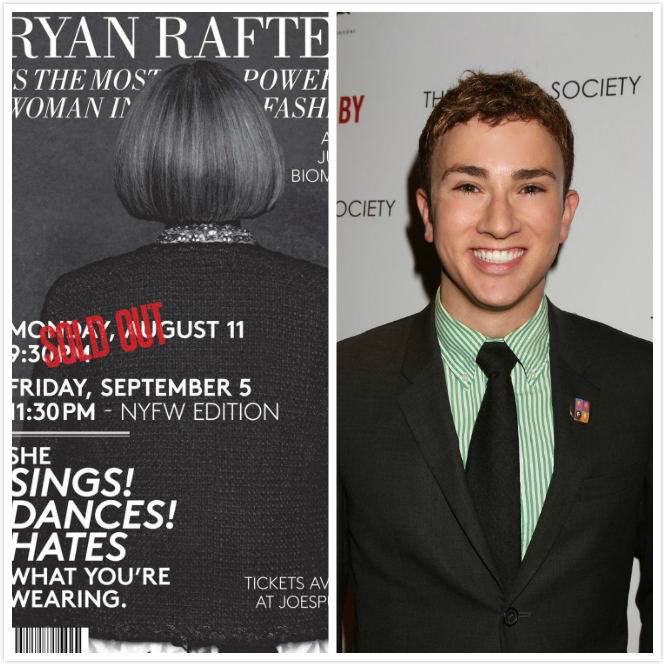 美国喜剧演员Ryan Raftery宣布他的单人音乐剧“Ryan Raftery,时尚界最有影响力的女人”将在今年9月13日划下句号,而剧中主人公的蓝本就是Vogue美国版主编Anna Wintour(安娜·温图尔)。