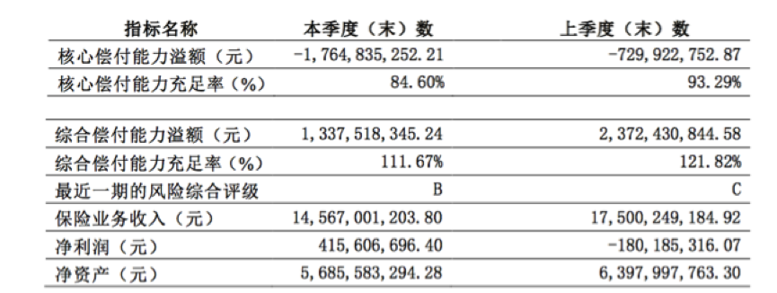 根据二季度偿付能力报告显示,百年人寿的核心偿付能力充足率为84.6%,综合偿付能力充足率为111.67%,在2018年四季度时百年人寿的综合偿付能力充足率曾逼近红线。