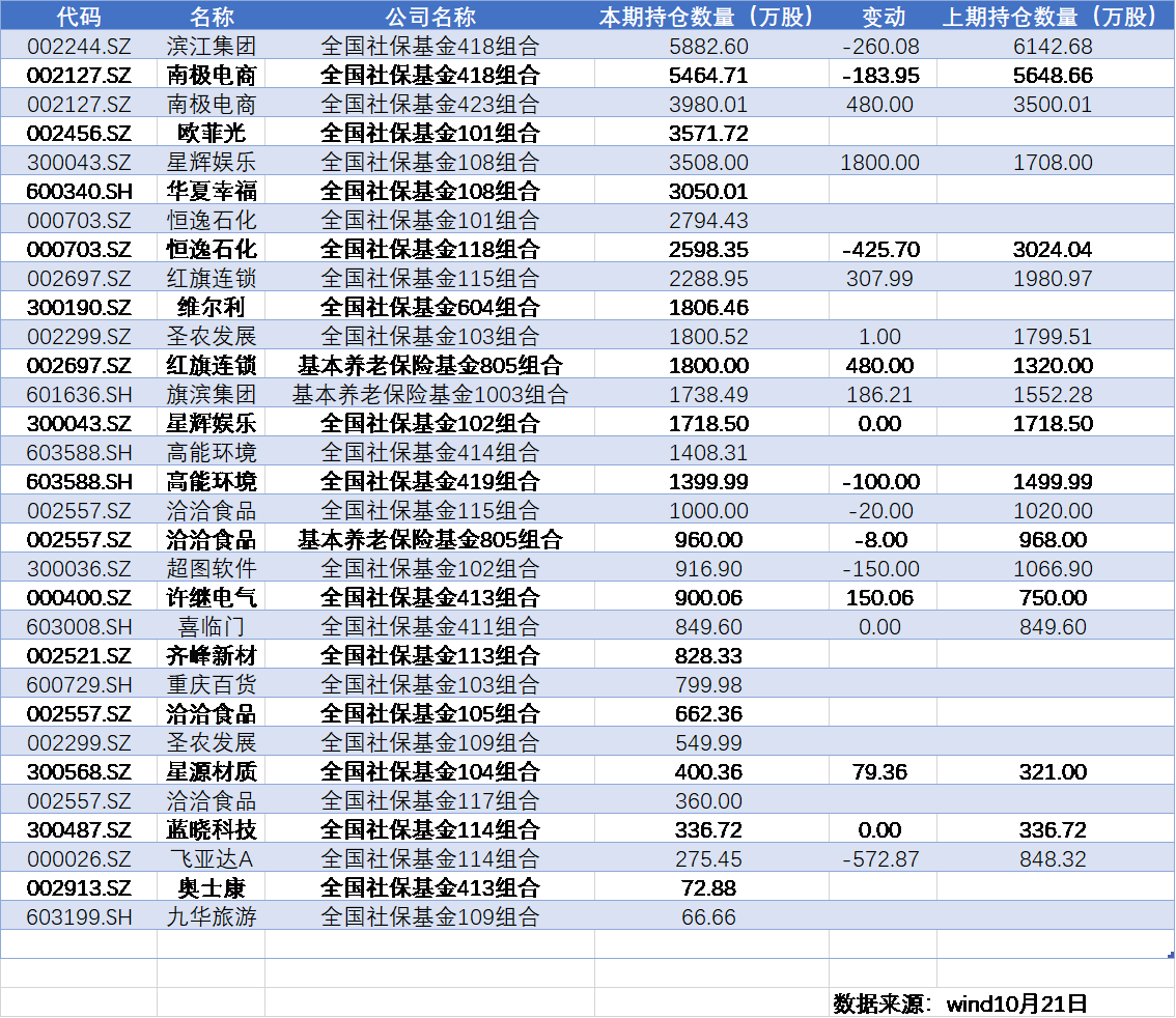 上市公司三季报正在密集披露中,社保基金的重仓情况也随之浮出水面。