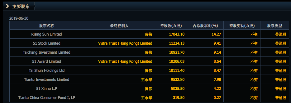 此外,据企业工商数据,51信用卡股东还牵出中国人保、中联重科、完美世界、上海大众公司身影。天眼查信息显示,天图投资通过旗下深圳天图兴邦投资企业(有限合伙)、北京天图兴北投资中心(有限合伙)等持有51信用卡股份。截至上半年,51信用卡上市主体股东尚包括天图投资王永华、新湖中宝黄伟旗下企业。
