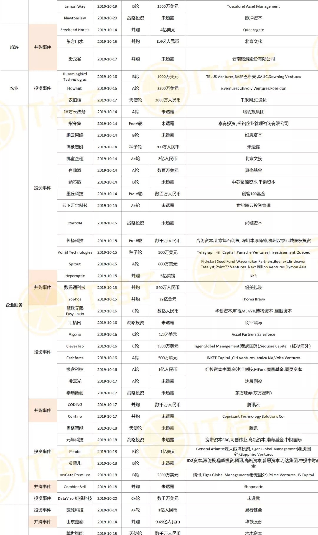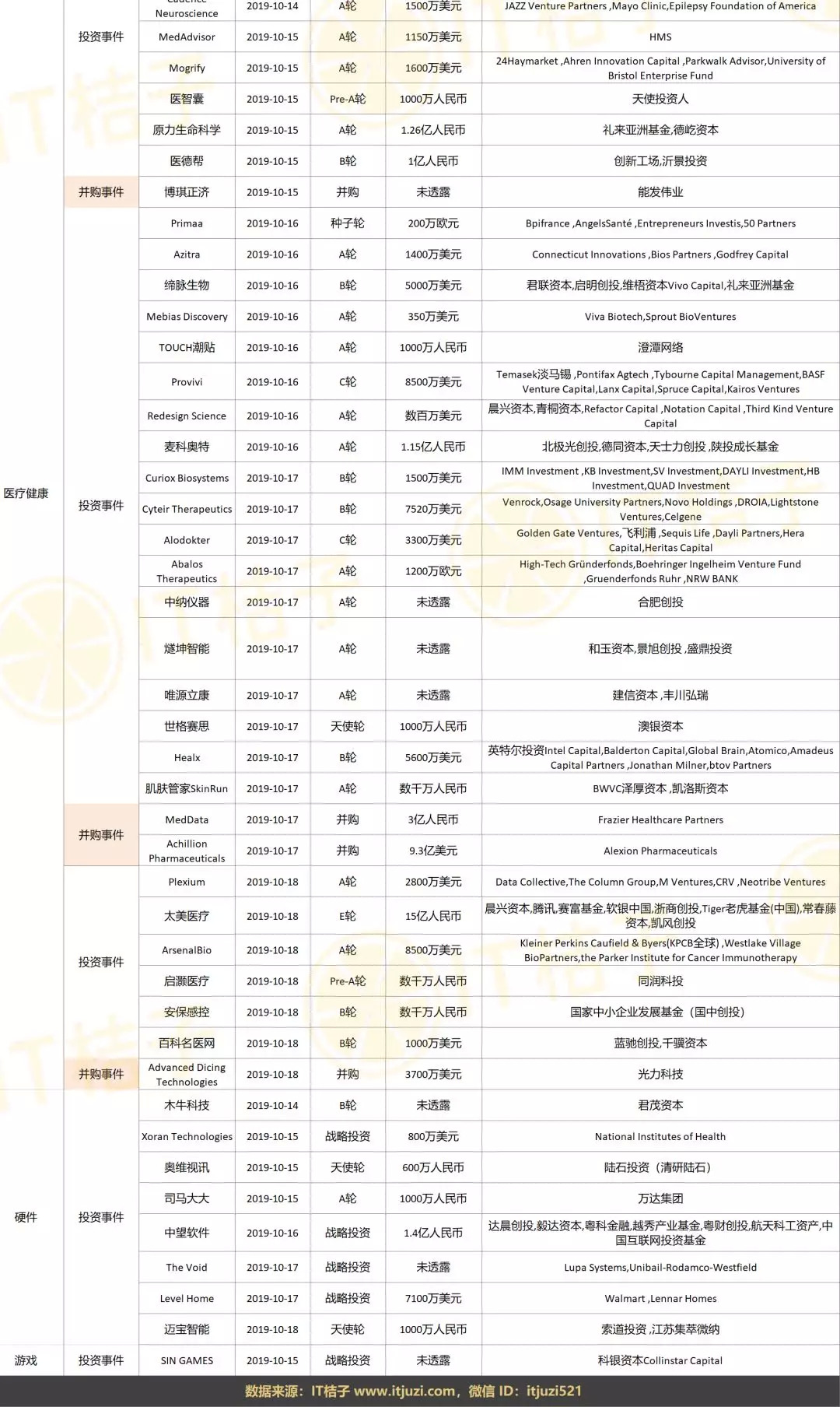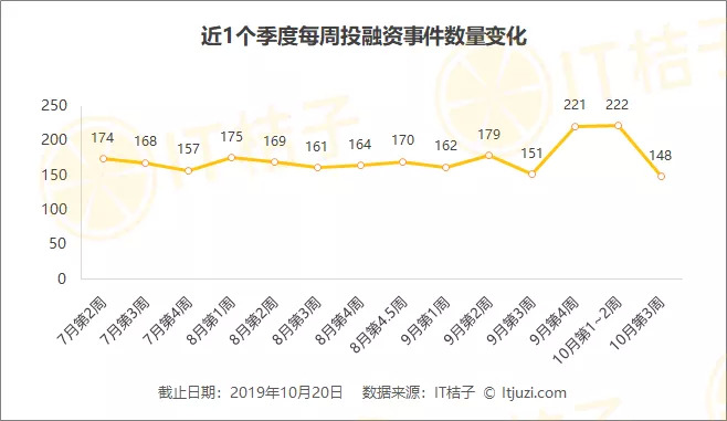 10 月的第三周是紧追不舍的忙碌,进入连上 10 天班中间只歇1天的疲惫期,上周共发生了 148 起投融资并购事件,虽然从数量上看是近一个季度的低点,但是不乏大手笔;根据 IT 桔子统计,国内融资 1 亿元以上的有 20 笔,其中超 10 亿元人民币的有 2 笔,包括太美医疗、千寻位置。