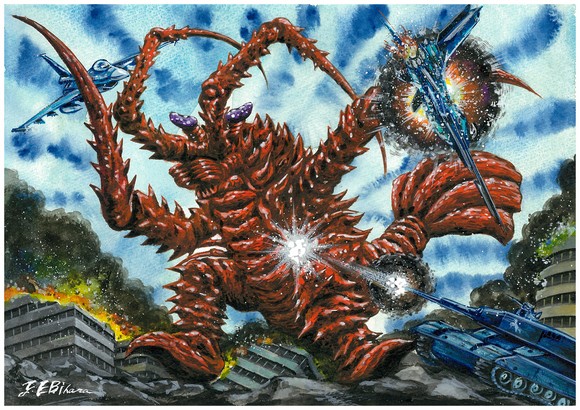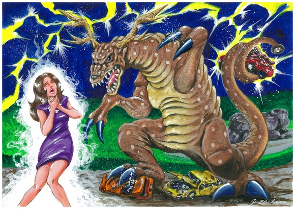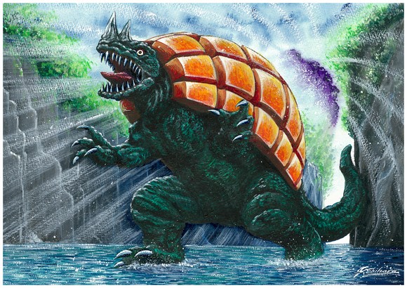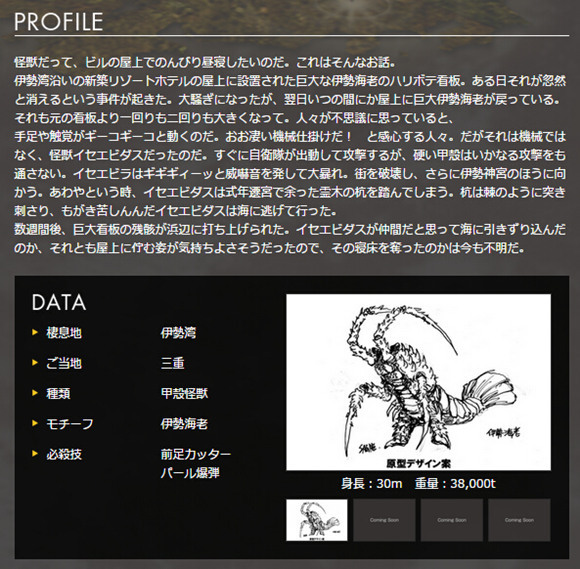 看出来了吧,这些怪兽各自身怀绝技,破坏力和战斗力也是设定在大Boss的级别,背后的故事更是异彩纷呈,估计任何一部拍出来精彩程度都不亚于《哥斯拉》。不过更多的时候,怪兽的设定有些怪怪的……也是蛮醉人的。