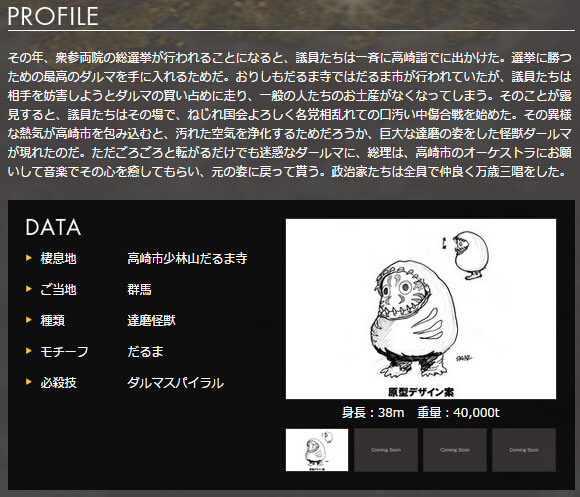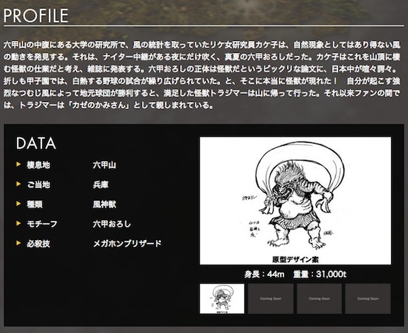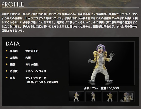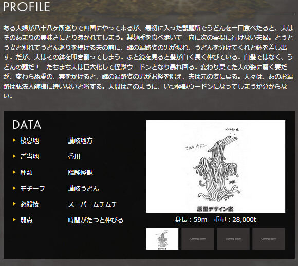 这些怪兽以当地的土特产、特色或著名观光点为灵感,例如代表盛产芒果的宫崎县的,是一只背上背着芒果的“芒果拉”。