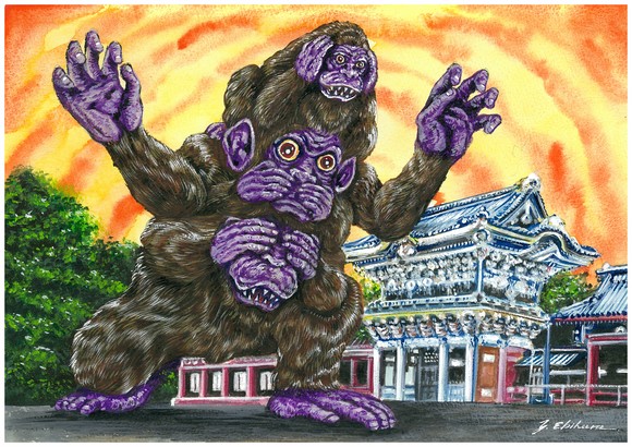 400年过去了,三只猴子在阳明门合体成了猴怪,率领众猴进攻人类,一直把人类逼到了东京。谁料,人类在这里都变成了马。