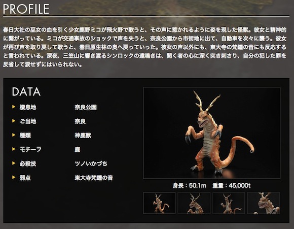 “继承了春日大社巫女之血的少女鹿野御子唱起歌来,歌声吸引了一头怪兽。原来,这头怪兽和她的精神相连。因为交通事故,御子失去了歌喉,怪兽于是离开奈良公园,来到街上,袭击了一辆又一辆汽车。