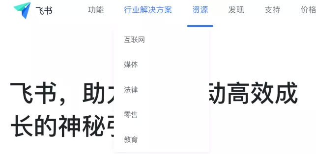 现在飞书发力的有五个行业:互联网、媒体、法律、零售、教育,属于企业协同办公的典型市场,同时也是字节内部重度需求的垂直领域。