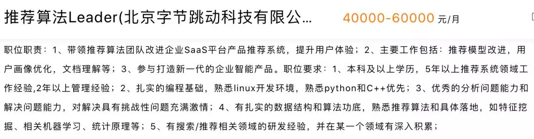 在招聘平台上,字节跳动最新发布的推荐算法Leader职位要求应聘者: