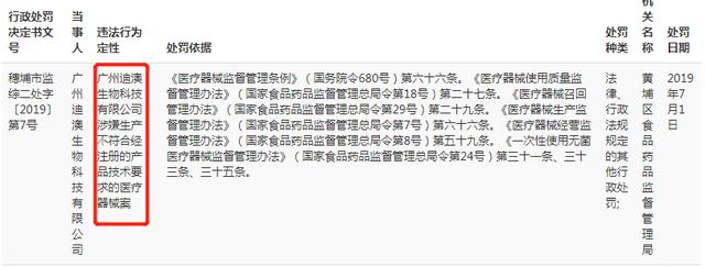 根据【穗埔市监综二处字〔2019〕第7号】文件,2019年7月1日,迪澳生物因生产不符合经注册的产品技术要求的医疗器械,被广州市黄埔区食品药品监督管理局做出行政处罚。