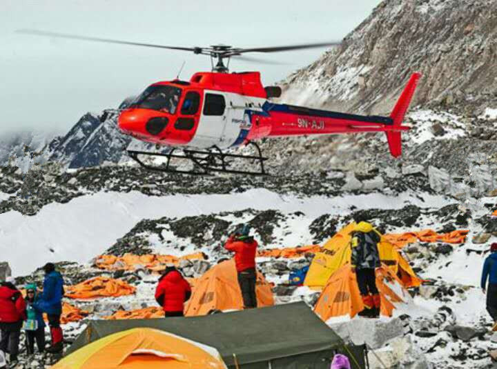 星期天,1号营地的小型机场成了一个交通枢纽,其繁忙程度简直可以媲美拉瓜迪亚机场的跑道。当天,直升机源源不断地降落,用来运送登山者下山。尼泊尔用于高海拔作业的直升机都被派往昆布冰川。但是登上这种飞机的方法却很不科学:进入直升机的人靠得都是飞行员和攀登指导的私人关系。但当然,武力有时候也起作用。很多Summit Climb的成员急于离开,所以一位马祖尔信任的员工,江布·夏尔帕(Jangbu Sherpa),生生将他们推上了飞机。