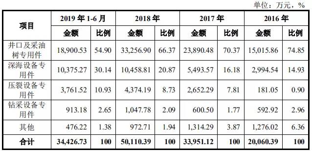 作为一家研发、生产和销售油气设备专用件的供应商,迪威尔目前已形成井口及采油树专用件、深海设备专用件、压裂设备专用件及钻采设备专用件为主的四大产品系列。其中,井口及采油树专用件是公司的主要收入来源。